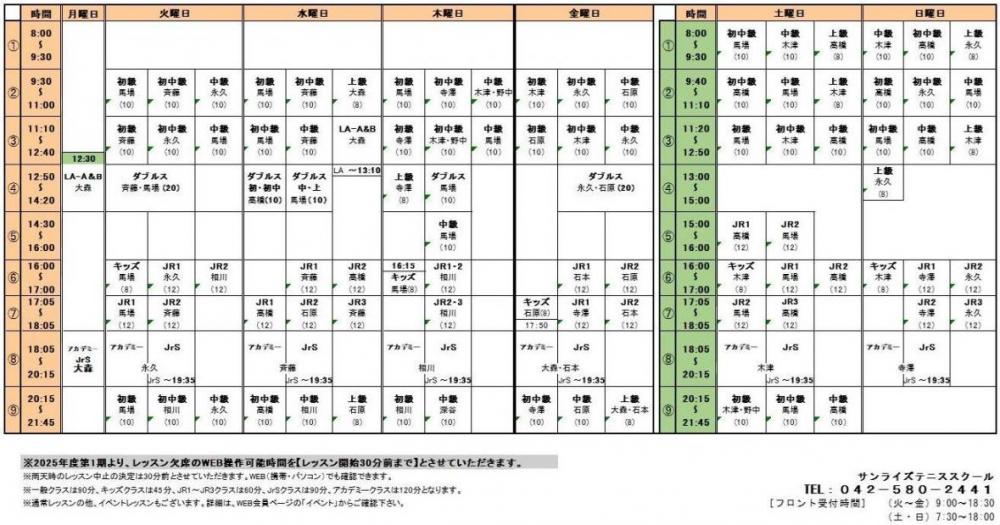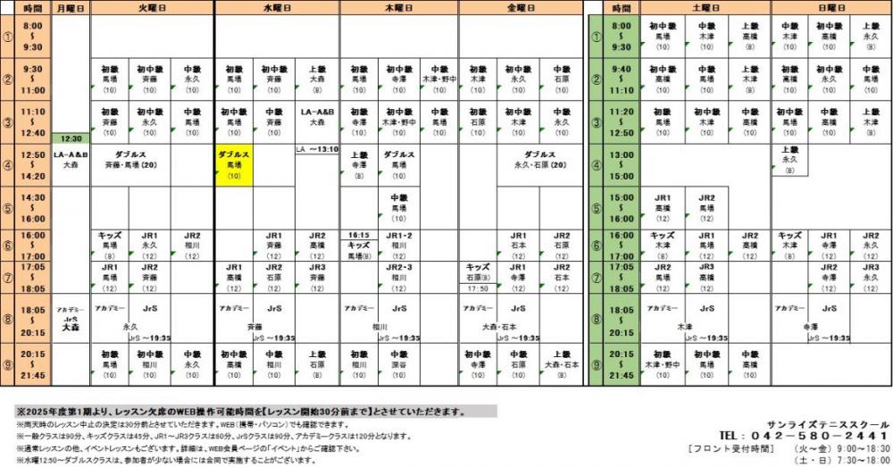 クラス 時間 定員 会費/月(税込) 週1回 フリー 平日昼間 土日・ナイター 平日昼間 入門 (2ヶ月のみ) 90分 10名 7,700円 8,800円 14,080円 初級 15,400円 17,600円 29,260円 初中級 中級 上級 8名 16,500円 18,700円 31,350円